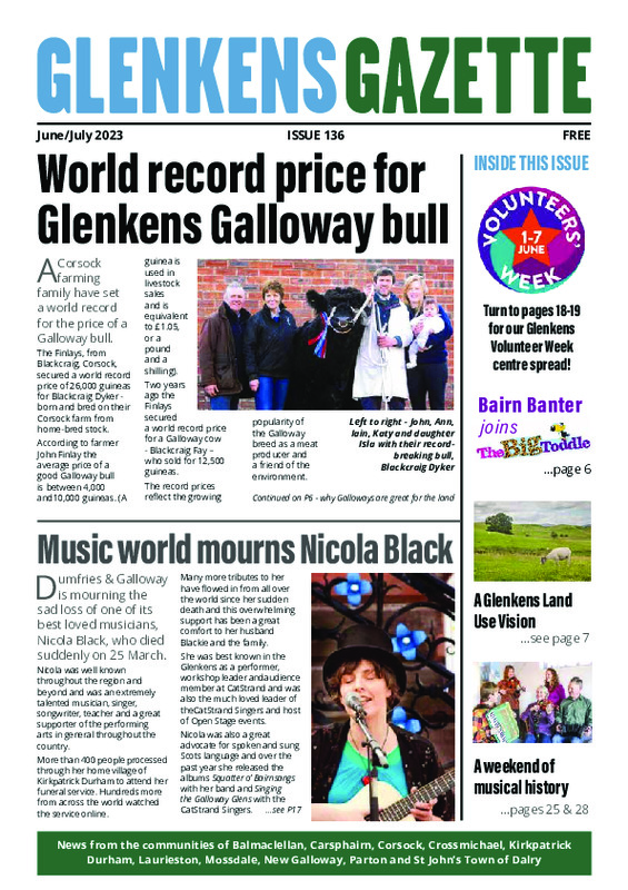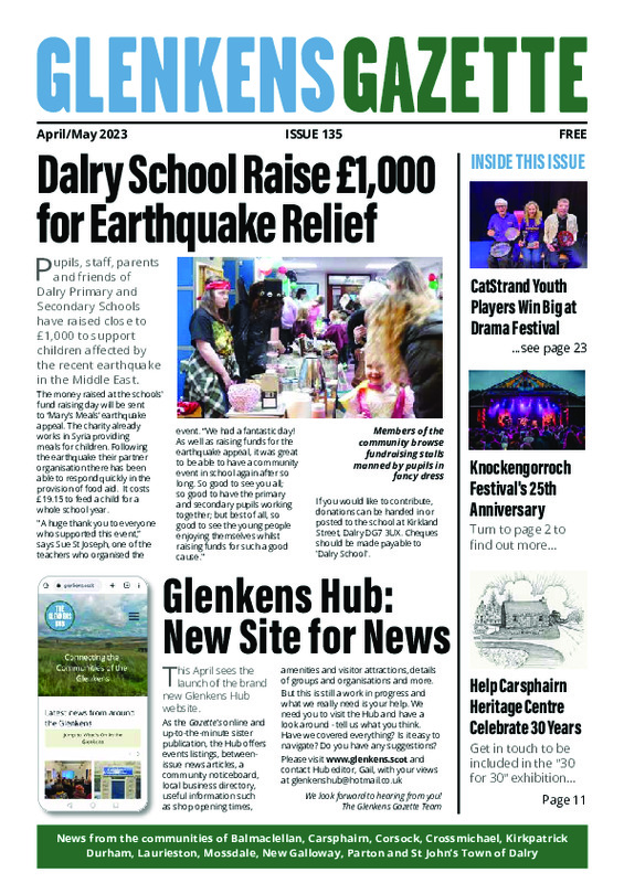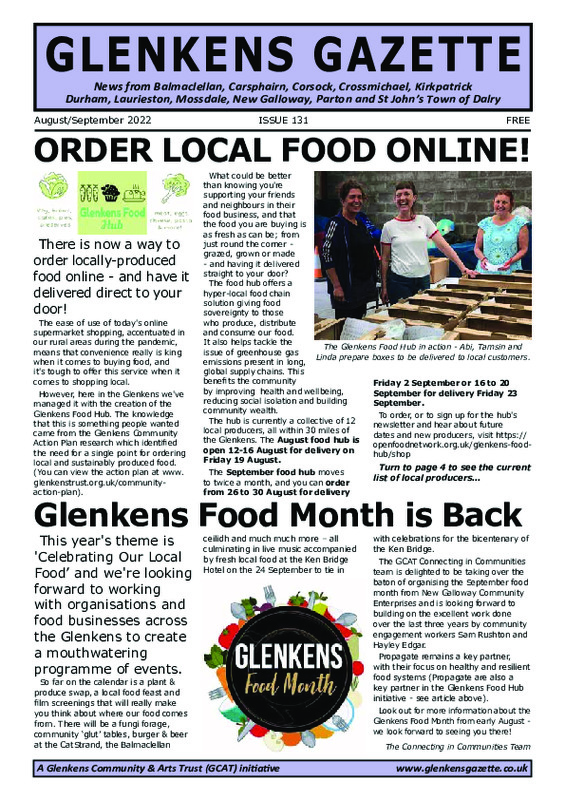 Find out more about the Gazette: Glenkens Gazette home page If you would like to submit an article or take out an advert, please email the editor Sarah Ade: glenkensgazette@hotmail.com