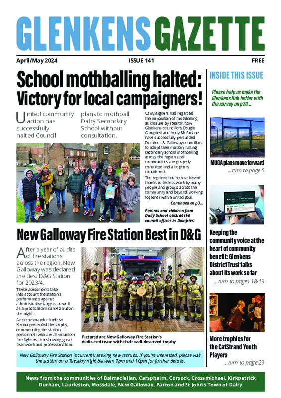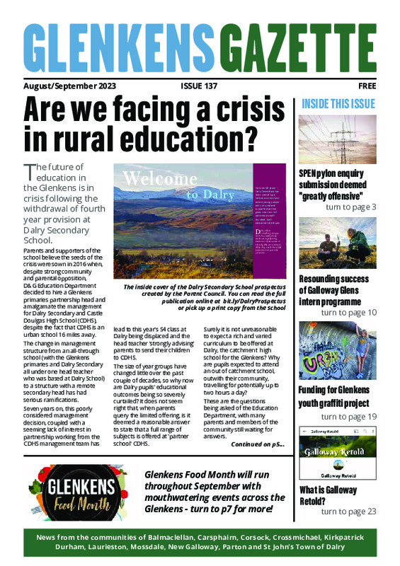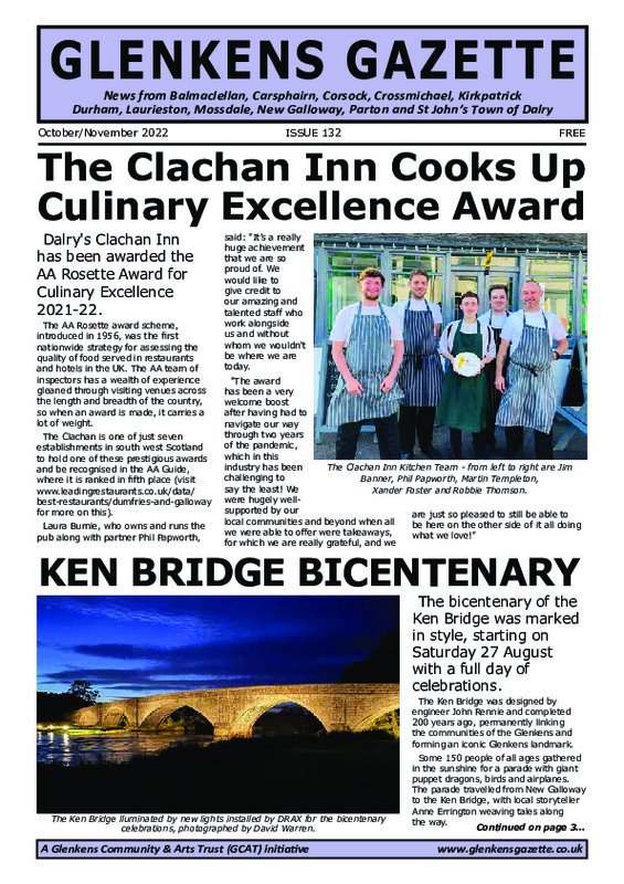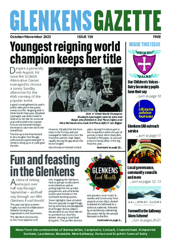 The Glenkens Gazette is an initiative of Glenkens Community & Arts Trust (SC032050) and represents the voice of the community (not necessarily the views of GCAT).