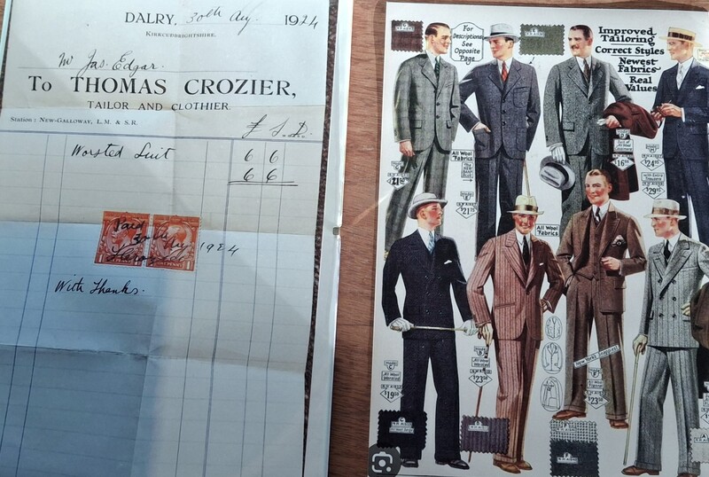 Account from Thomas Crozier and image of suits in 1924
