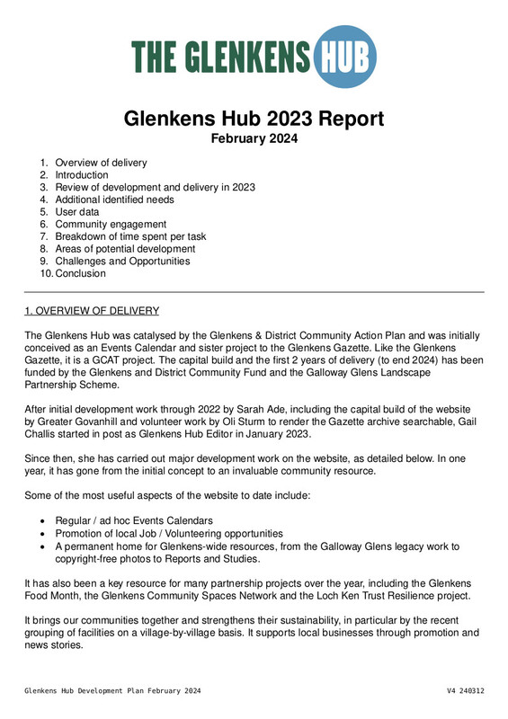 Throughout its second year of delivery, the Glenkens Hub sought to support the local community by amplifying news and events and reflecting the issues of most importance. This report includes results from the 2024 survey, user data and plans for future development to meet identified needs.
