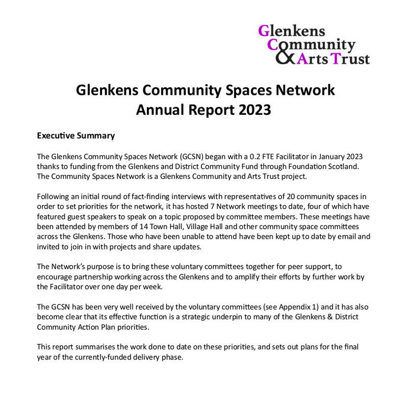 The Network’s purpose is to bring these voluntary committees together for peer support and to encourage partnership working across the Glenkens. This report summarises the work done to date on these priorities, and sets out plans for the final year of the currently-funded delivery phase.