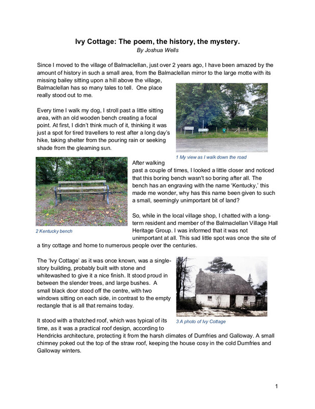 By Joshua Wells. Prize winning entry in the Dumfriesshire and Galloway Natural History and Antiquarian Society Young Researcher Competition for 2024.