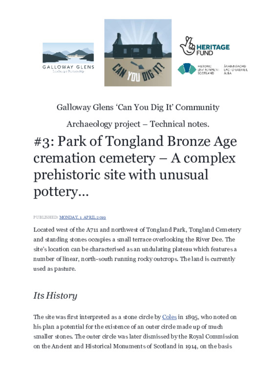 Prepared as part of the Galloway Glens Can You Dig It scheme, these notes summarise some of the historic archaeological excavations to have taken place in the Galloway Glens area.